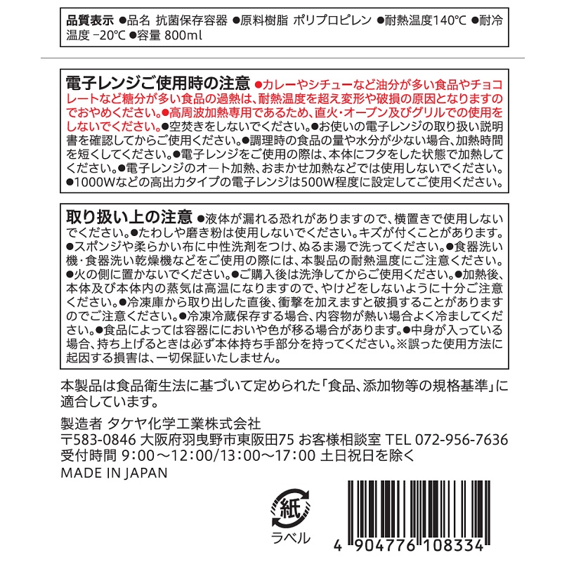 フタをしたまま電子レンジが使える抗菌保存容器。
