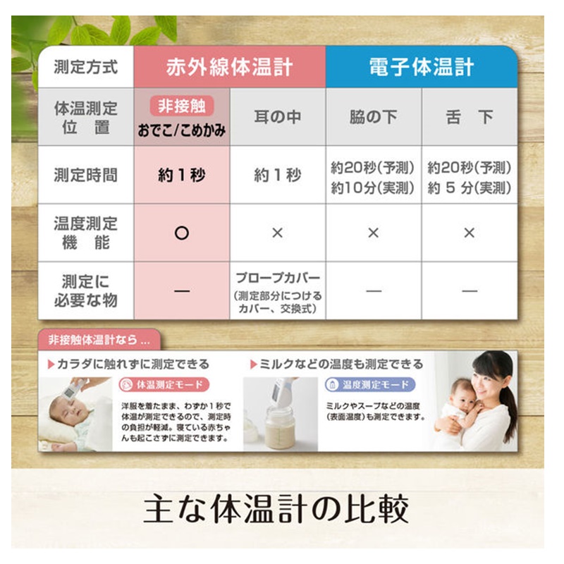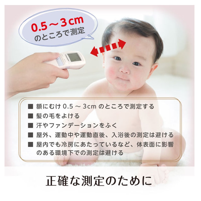 寝ている子供や、動いてしまう赤ちゃんなどの体温もわずか1秒で測定できるので、測定時の負担が軽減できます。
