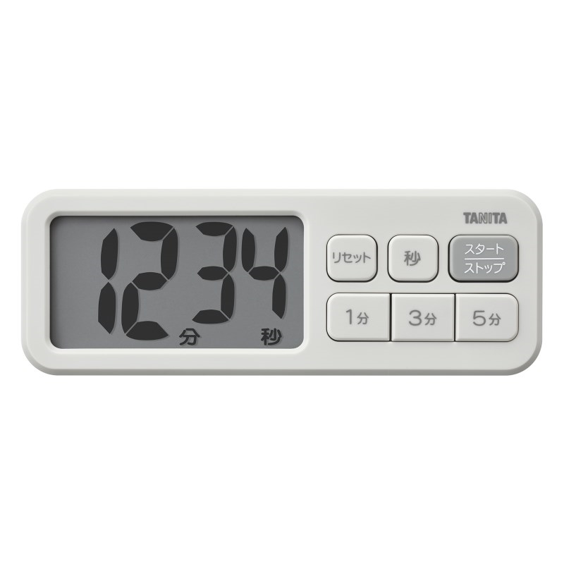 抗菌仕様で清潔に使える「でか見え」タイマー。1分、3分、5分ボタンでらくらく設定。