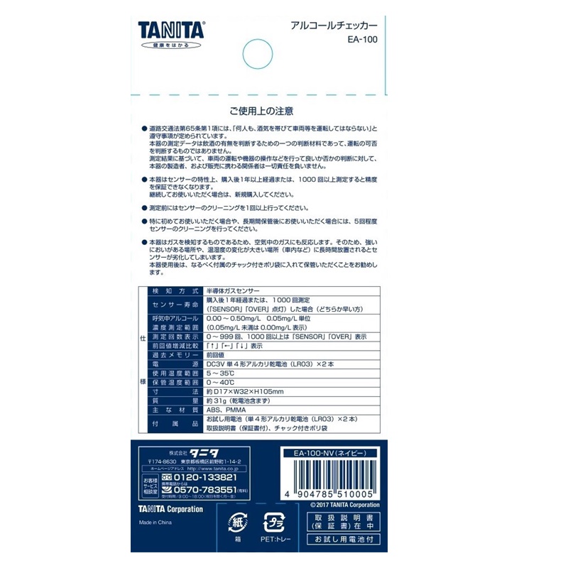 ※センサー寿命は購入後1年経過または1000回測定した場合のどちらか早い方となります。
