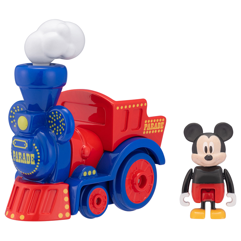 パレードシリーズを率いる先頭車、汽車のパレードフロートとミッキーマウスフィギュアのセット商品です。