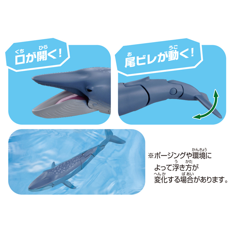 シロナガスクジラは口が開き、尾ビレが動きます。