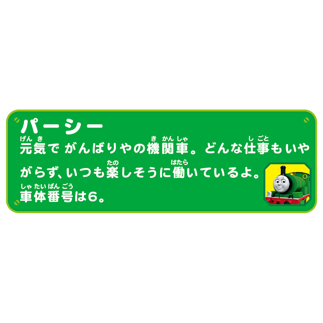 ・パーシーのセリフ以外にも、メロディや汽笛、走行音などを収録。