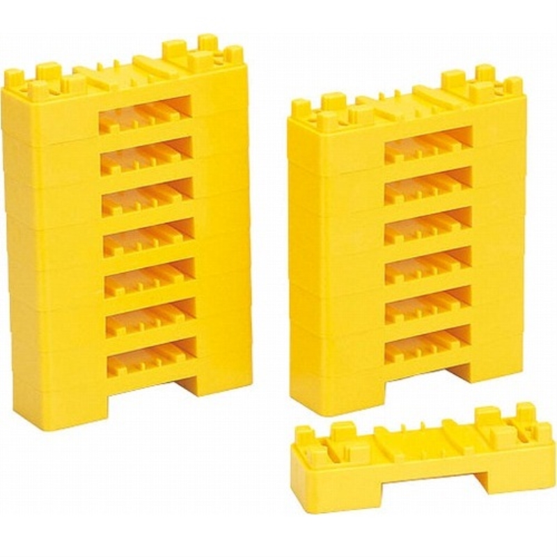 ミニ橋脚同士を積み重ねたり、坂曲線レールやブロック橋脚と組み合わせ、いろいろな高さにできる便利な橋脚です。