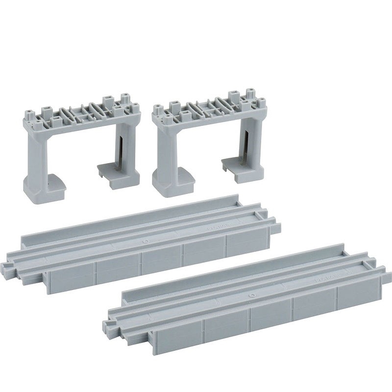※レール2本入。オモテとウラが使えます。・ブロック橋脚(グレー)2個・架線柱2本付。