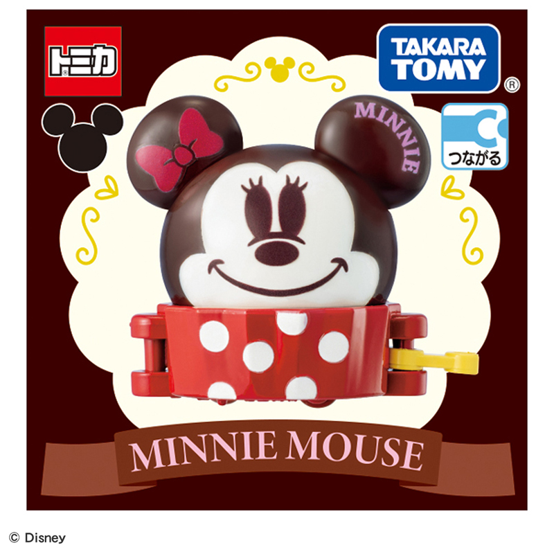 ミニーはチョコレートカラーにラズベリー色のリボンがポイントです。カップはスカートの水玉模様をデザイン。