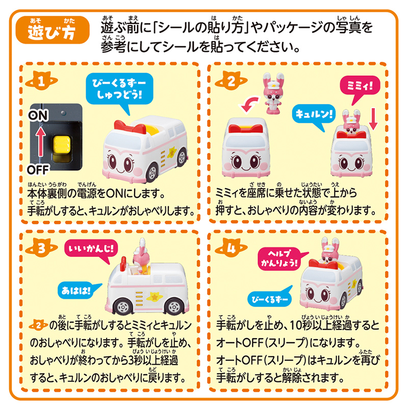 (ミミィ以外の他のキャラクターフィギュアを乗せると会話パターンには切り替わらず、キュルンの音声のみが流れます。)