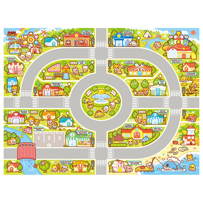 びーくるずーのおはなしに登場する街を再現した約横120cm、縦90cmの大きなプレイマップです。