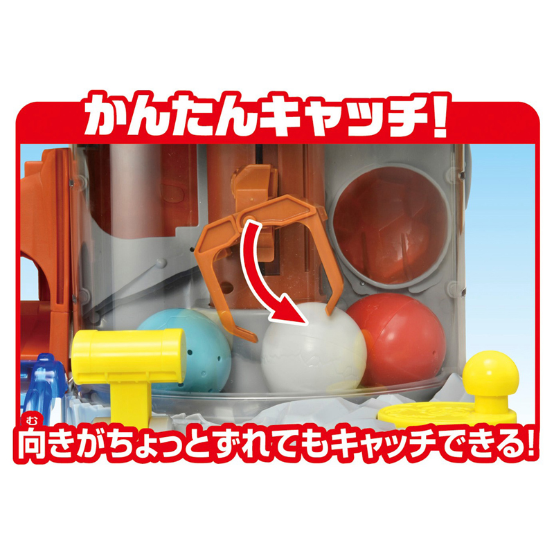 電動のクレーンを使って上手にたまごをキャッチ、たまごの中からはアニアの子ども恐竜が出てきます。