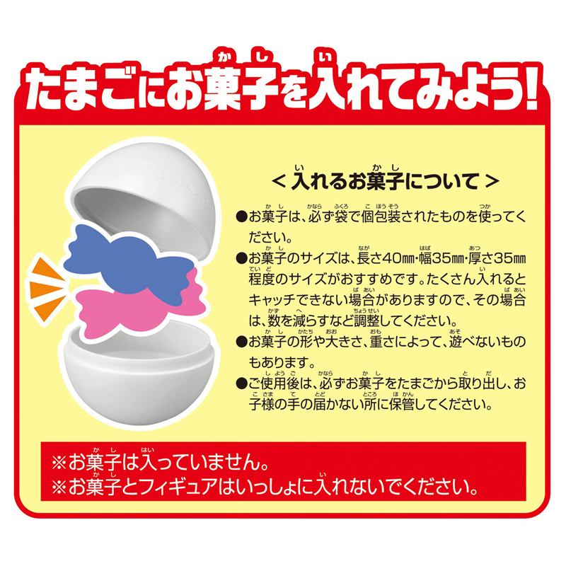 ※お菓子を入れて遊ぶ際は、必ず個包装されたものを使ってください。お菓子とフィギュアを一緒に入れないでください。