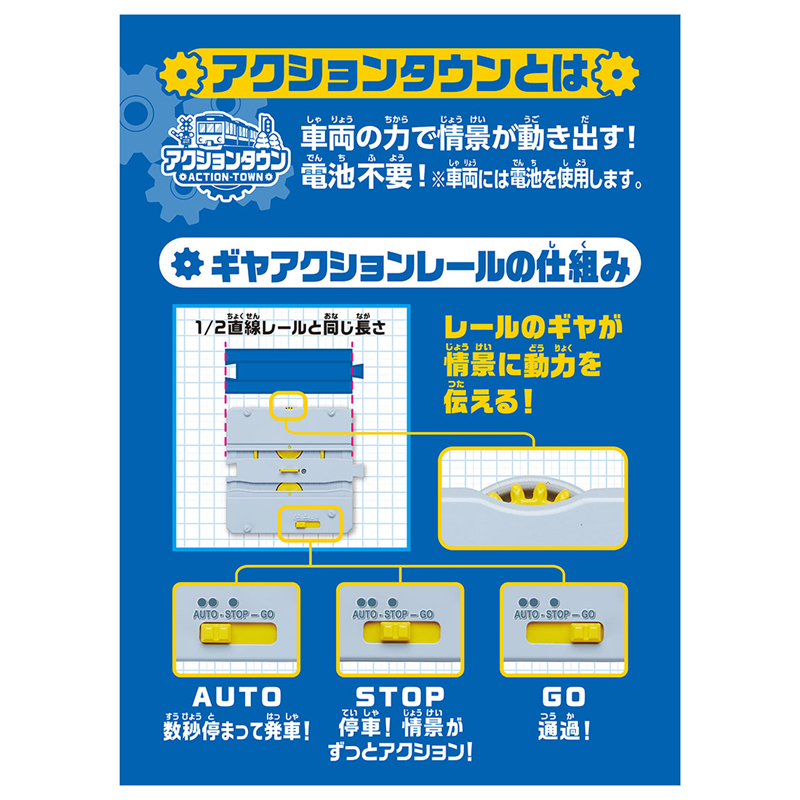 ギヤアクションレールはスイッチでAUTO、STOP、GOの3種類に切り替えができます。