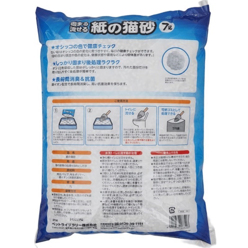 トイレに流せる、しっかり固まる紙の猫砂です。