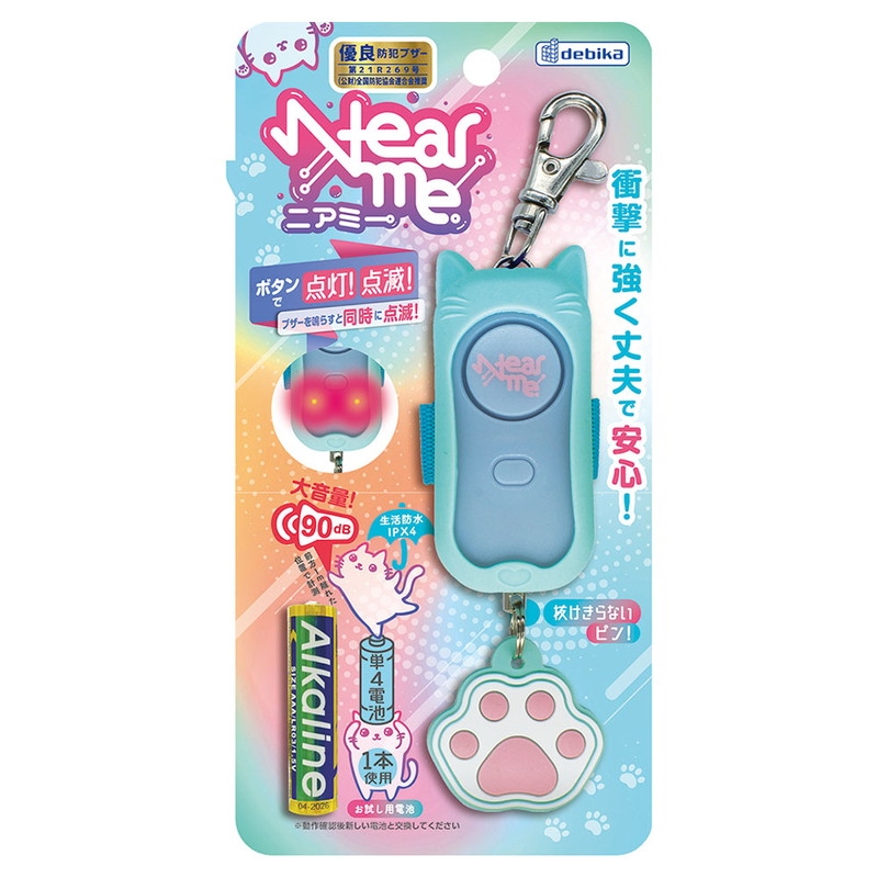 ・ピンを引くとライトが点滅し大音量ブザー音(約90dB/1m離れた位置で計測)が鳴ります。