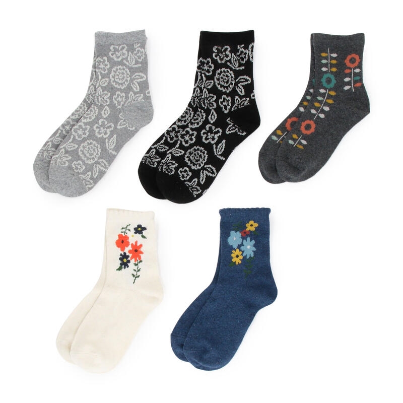 フラワー柄を色違いで5足入れたお買い得商品です。