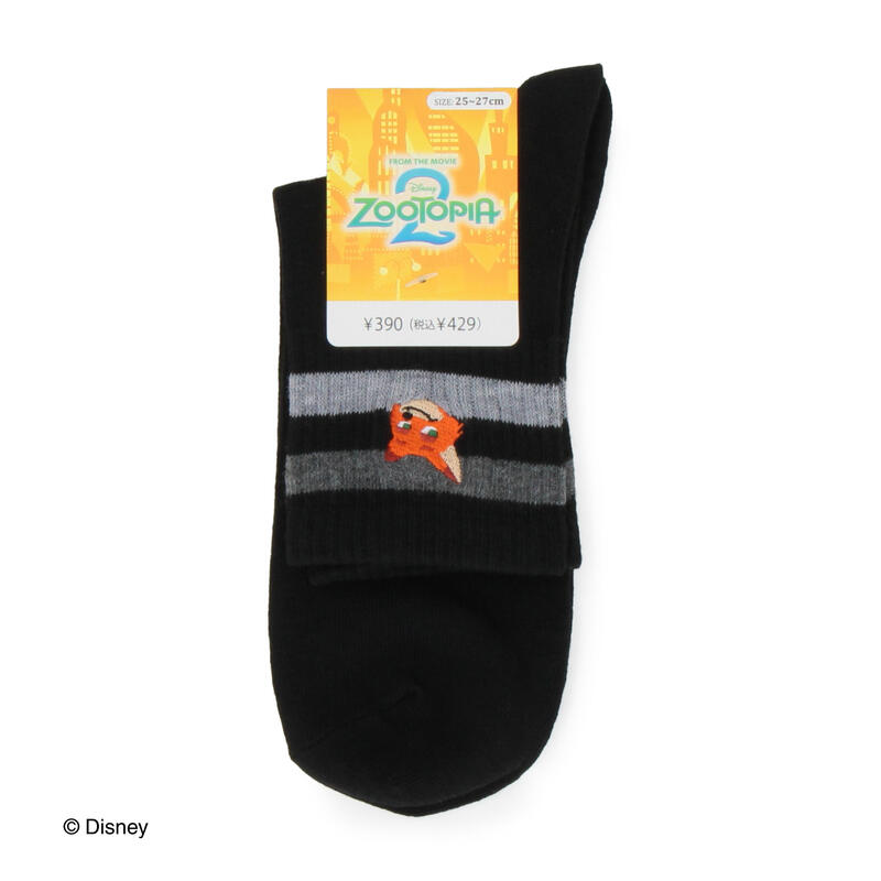 12月5日の映画公開で話題のズートピア2から主役ニックの刺しゅうを施したショート丈ソックスです。