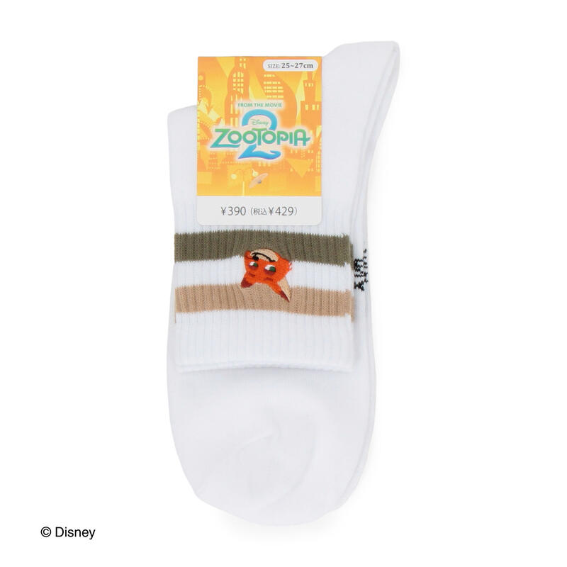 12月5日の映画公開で話題のズートピア2から主役ニックの刺しゅうを施したショート丈ソックスです。
