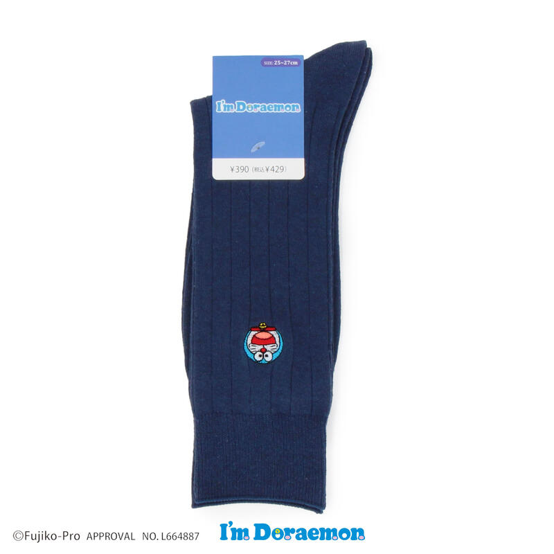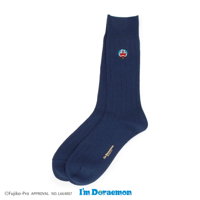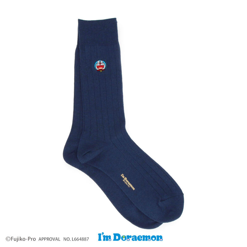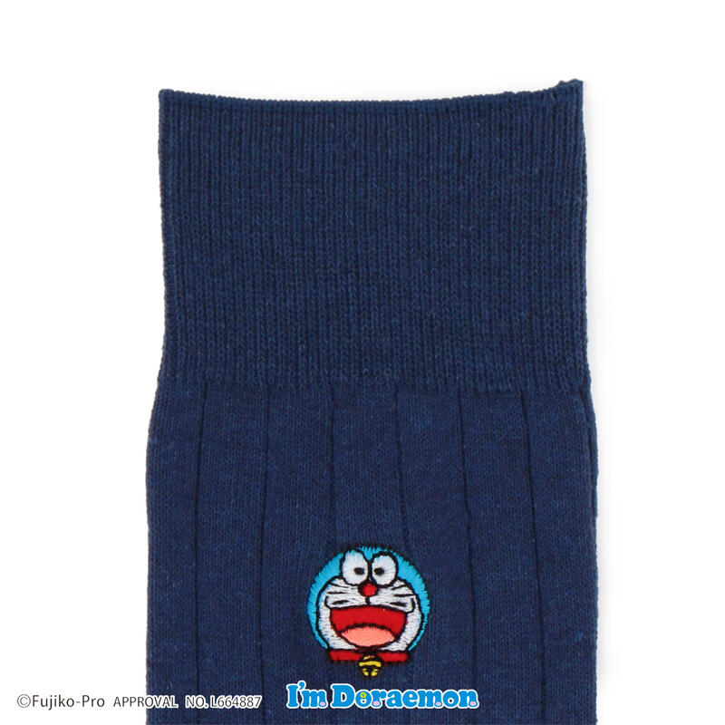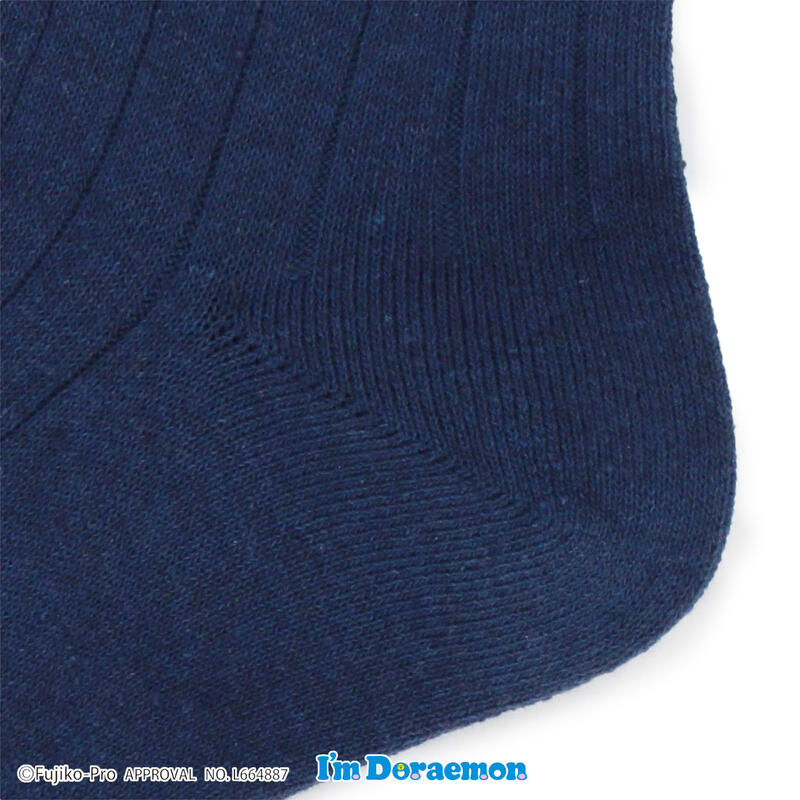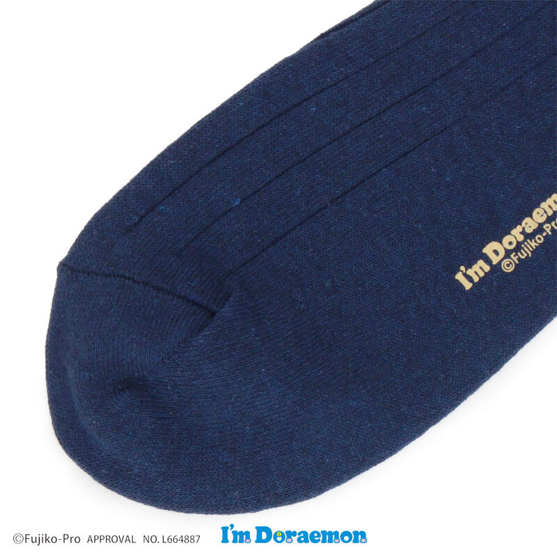 「アイムドラえもん」の刺しゅうを施したクルー丈ソックスです。