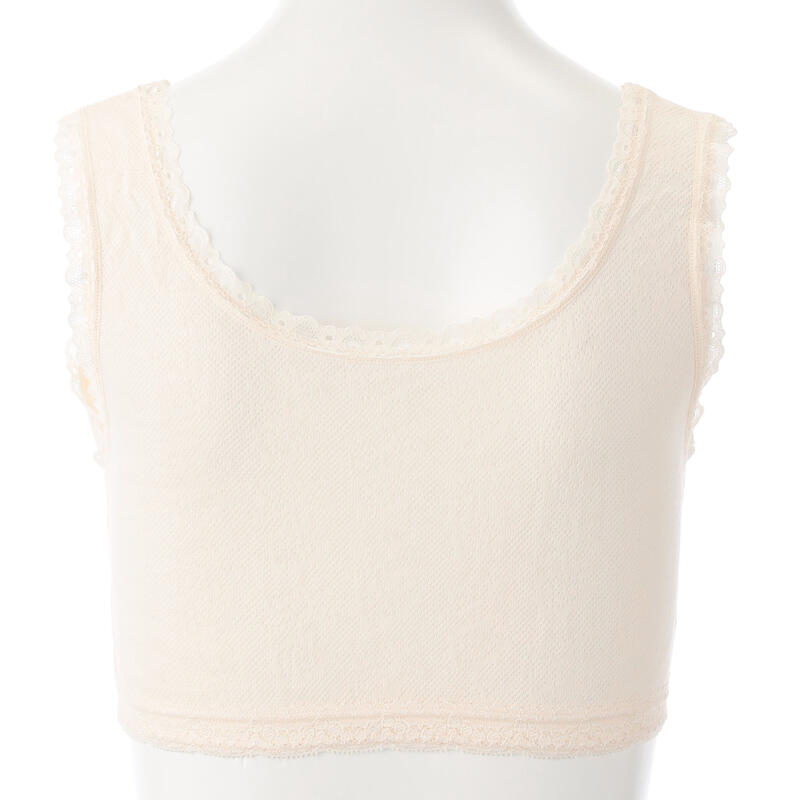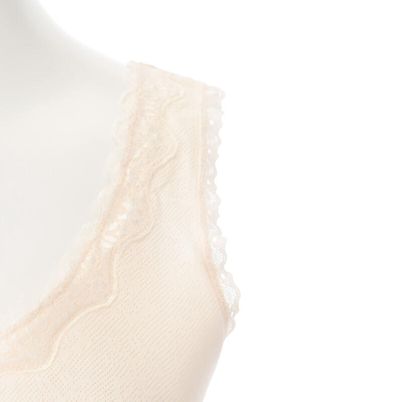 裾レース部は身生地の裏当て仕様で、レースが肌にあたりにくい。