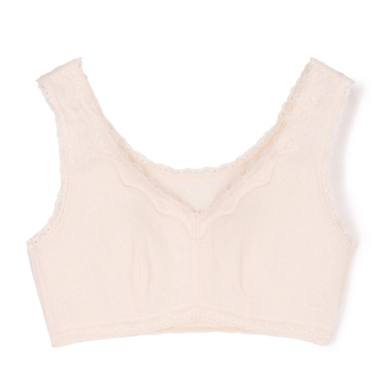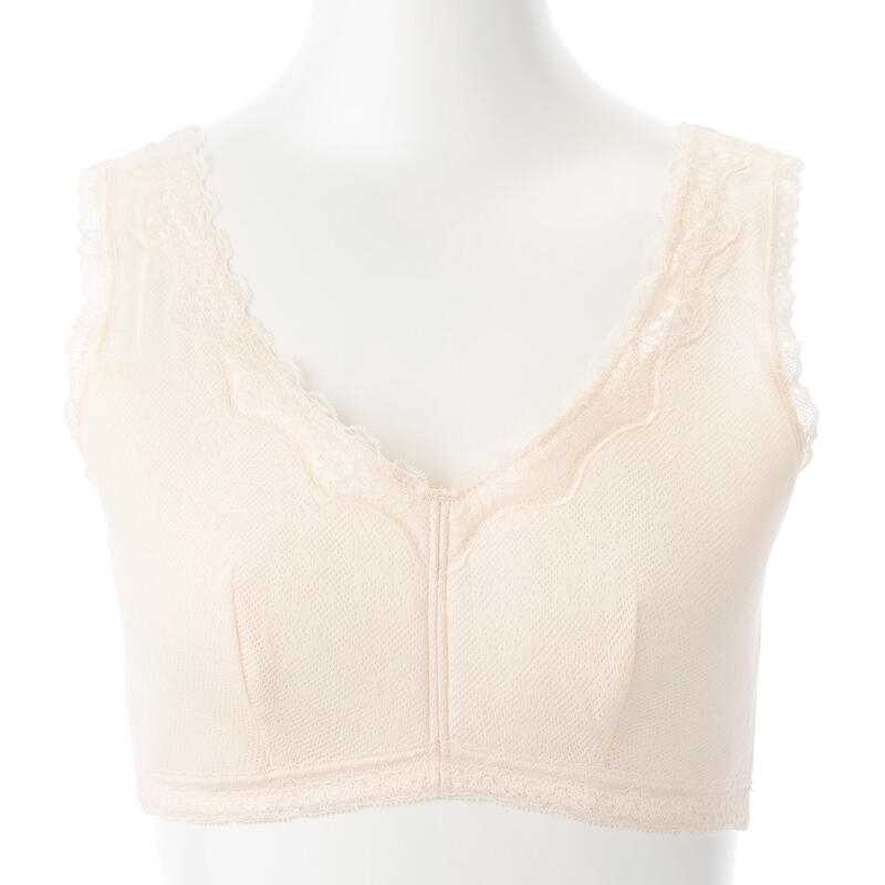 しめつけない楽な着心地のらくらくハーフトップブラジャー、前とじ・かぶりタイプ。
