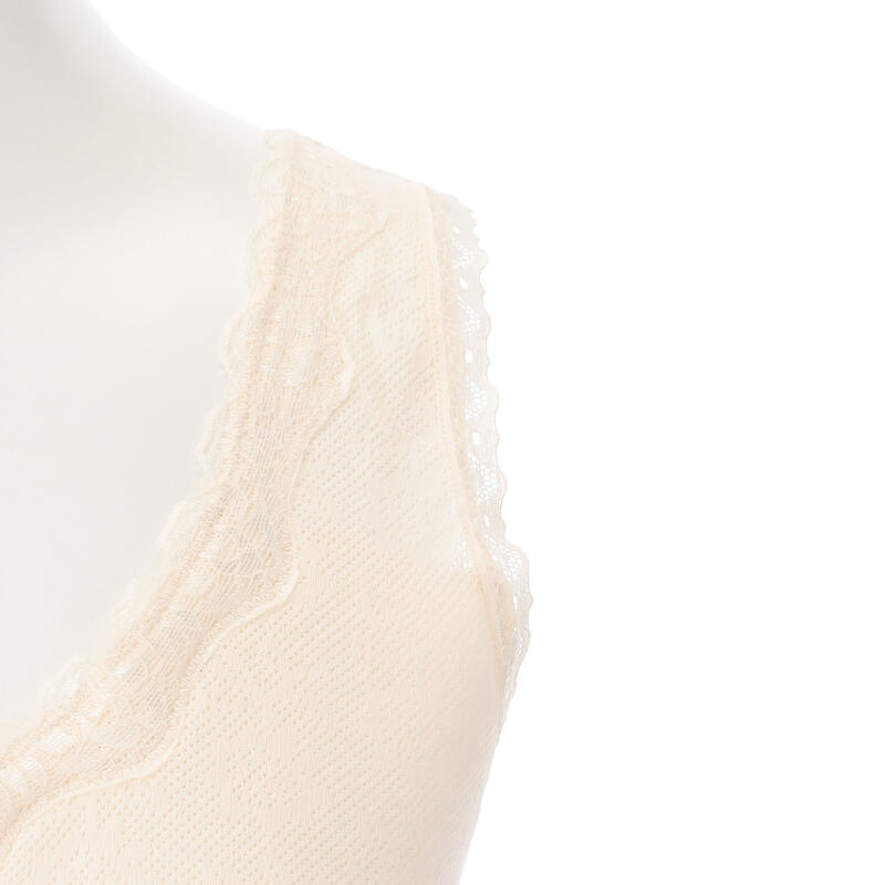 裾レース部は身生地の裏当て仕様で、レースが肌にあたりにくい。