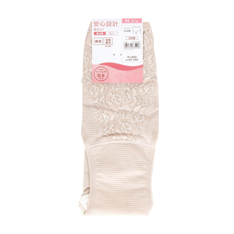 いつもの肌着【日本製】安心設計 吸水機能付きショーツ 吸水量(目安)5cc。