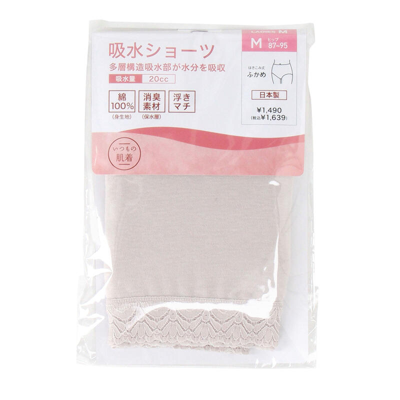いつもの肌着【日本製】吸水機能付きショーツ 吸水量(目安)20cc。