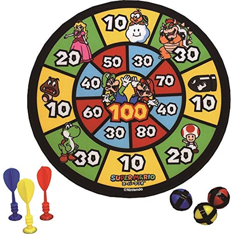 ・マリオのキャラクターが付いたダーツ遊び、小さなお子様でも遊べるマジックテープ仕様。