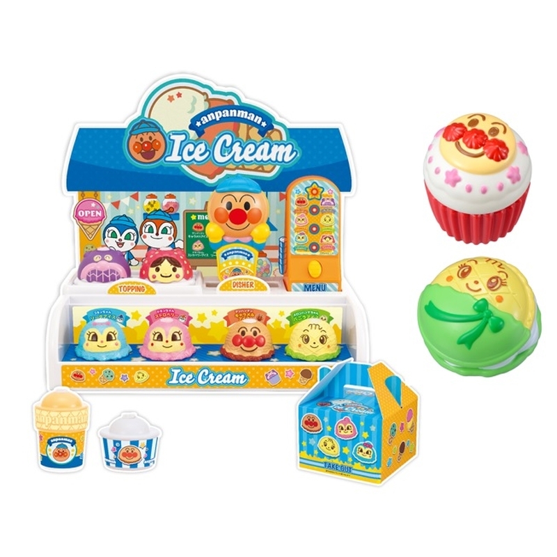 ・アンパンマンとなかまたちのお顔のかわいいアイスが4種類、トッピングが2種類付いています。