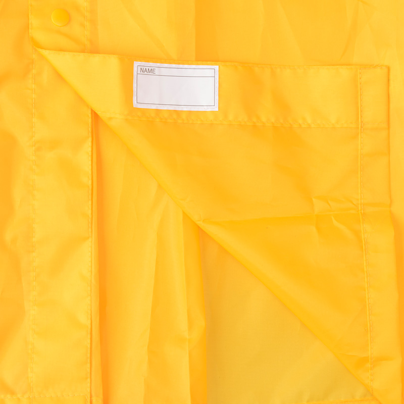 フードには透明ひさし、背中には反射材を使用し安全性にも考慮しております。