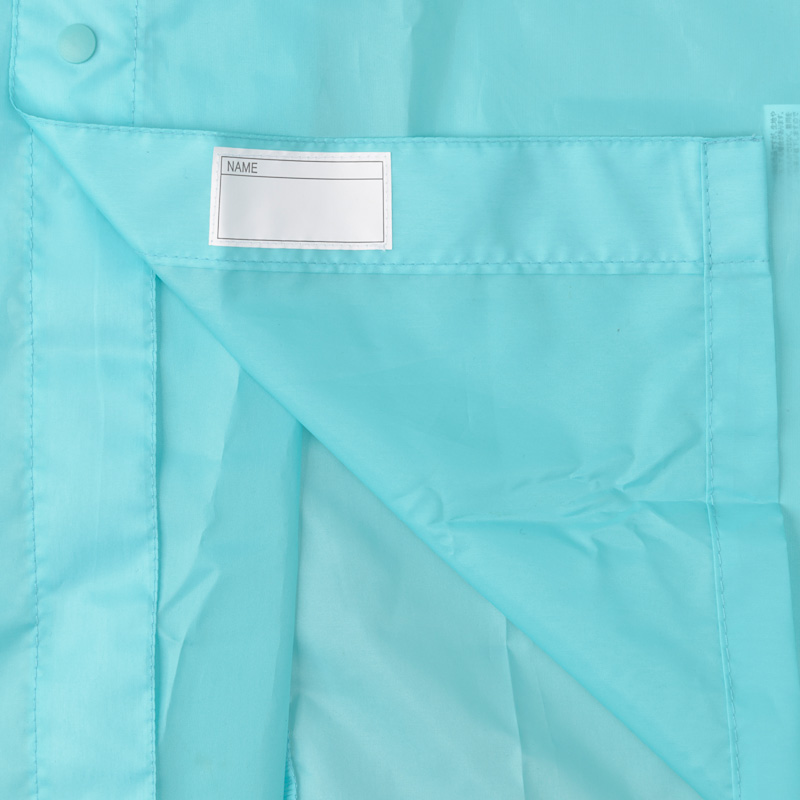 フードには透明ひさし、背中には反射材を使用し安全性にも考慮しております。