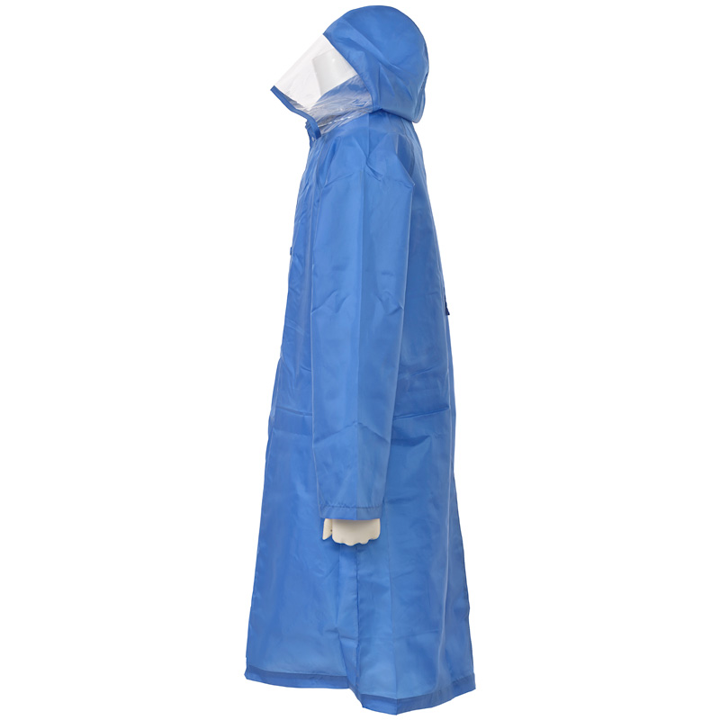 フードには透明ひさし、背中には反射材を使用し安全性にも考慮しております。