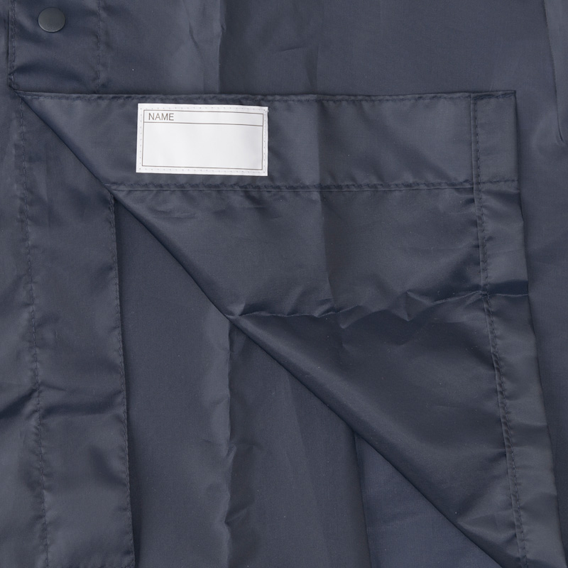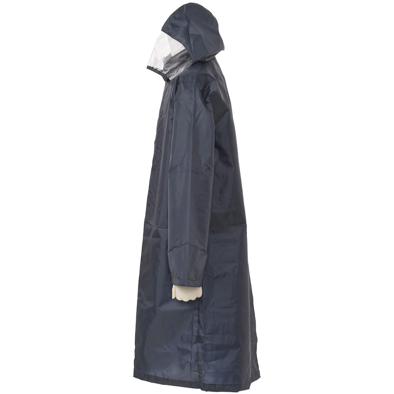 フードには透明ひさし、背中には反射材を使用し安全性にも考慮しております。