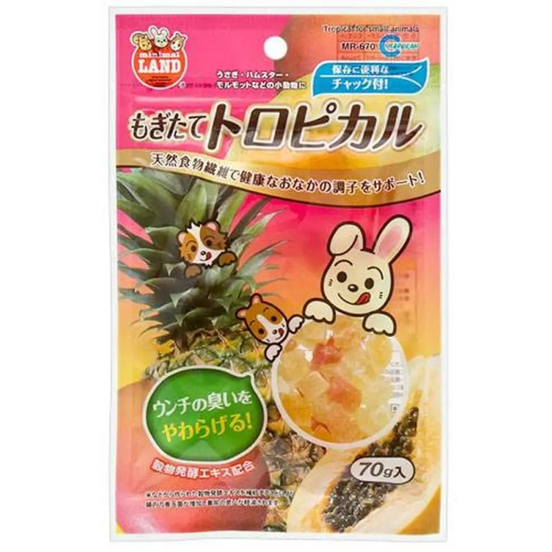 ・南国で栽培されたフルーツ(マンゴー・パパイヤ・パイン)を食べやすい大きさにカットした小動物のおやつです。