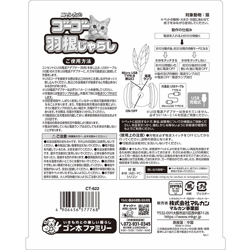 前後の動きと羽根がゆらゆら動いて、猫ちゃんの興味を引く電動おもちゃ