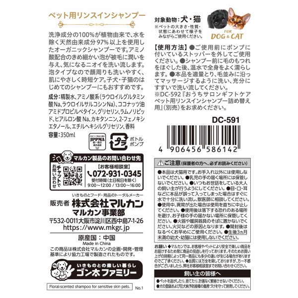 ・アミノ酸配合のきめ細かい泡が被毛に潤いを与え、気になるニオイを洗い流します。