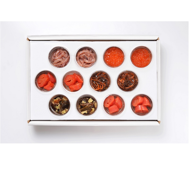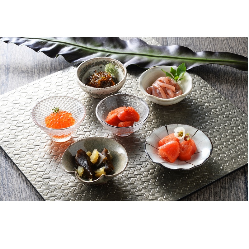 いくら醤油漬け、たらこ、明太子、いか塩辛、松前漬け、昆布佃煮 各20g×2