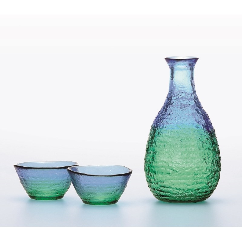 緑と青の色合わせが爽やかな酒器揃えです。 酒器セット