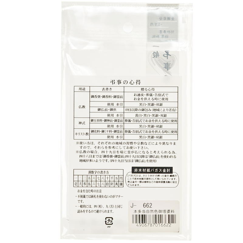 中袋も付き、あらかじめ御塔婆料の記載がありますので、すぐに使えるのが便利です。
