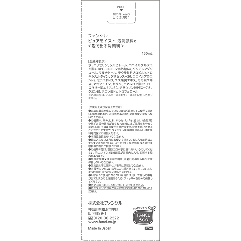 ・プッシュするだけで、濃密でキメ細やかな泡ができ、肌をこすらずにやさしく洗えます。