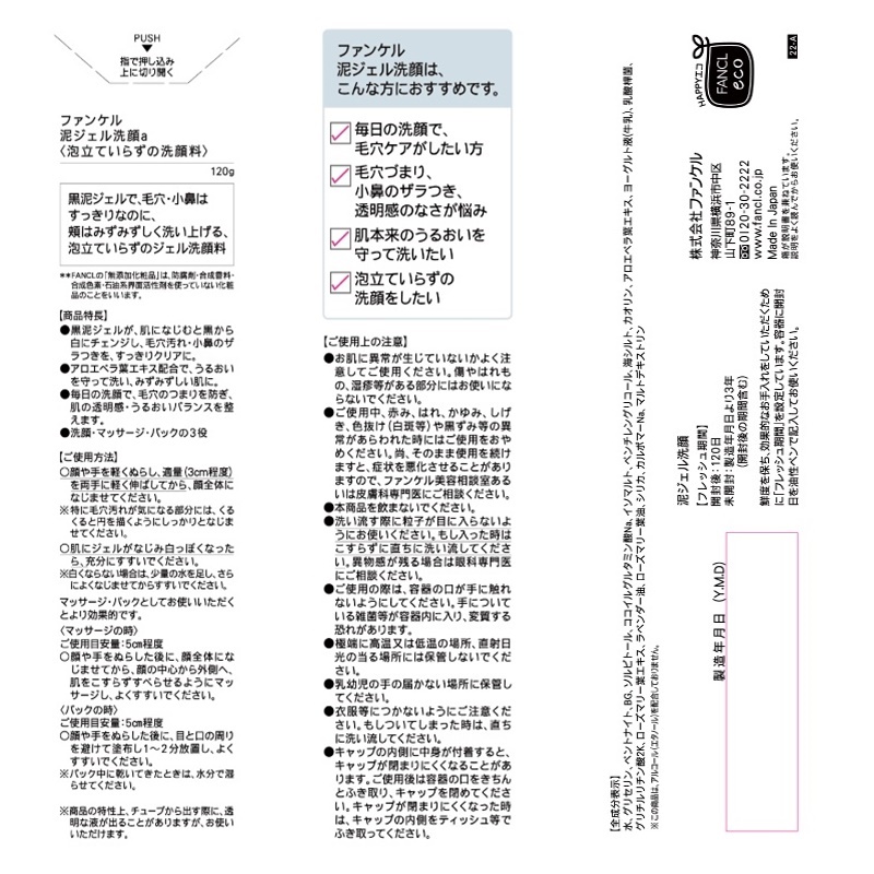 ファンケル 泥ジェル洗顔a <泡立ていらずの洗顔料> 120g