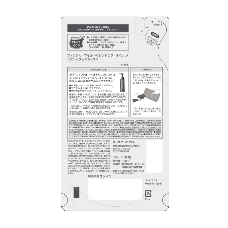 ファンケル マイルドクレンジングオイルbk ブラック&スムース 115ml 詰替
