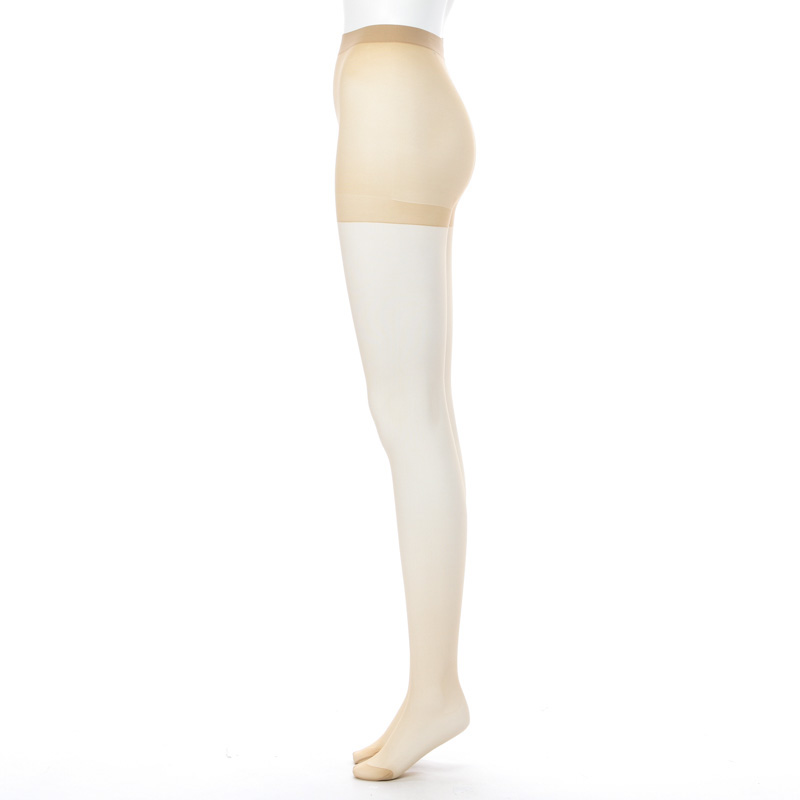 土踏まずを強く、足首、ふくらはぎとしだいにサポート力を弱くしていくと、美しさだけでなくやさしく快適なはき心地を