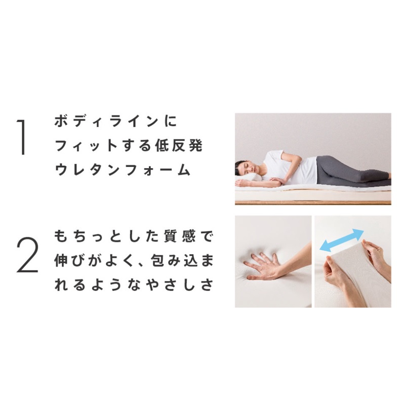 低反発ウレタンフォームを使用し、ボディラインに沿いフィット感のあるマットレス。