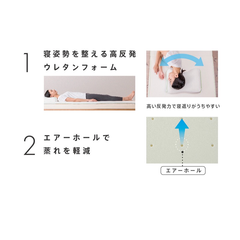 高反発ウレタンフォームを使用し、寝姿勢を整え寝返りしやすいマットレス。