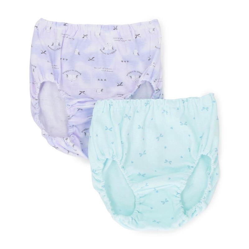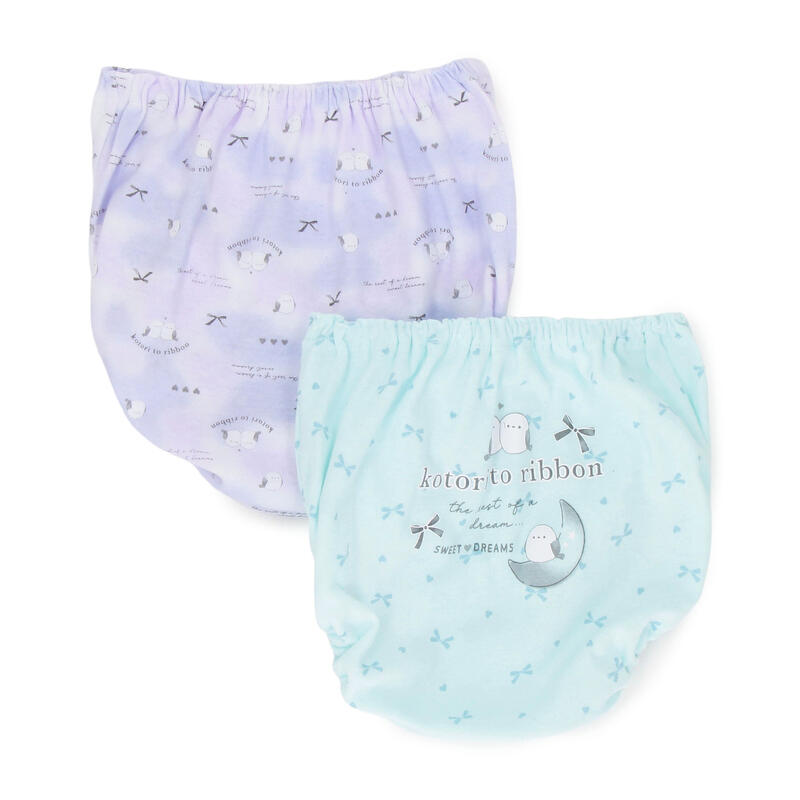コトリトリボンのデザインで総柄とワンポイントの組み合わせの2枚組のショーツになります。