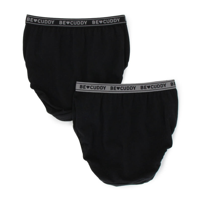 アウトゴム仕様で本体はT/Cベア天竺でロゴデザインゴムのシンプルな2枚組のショーツになります。