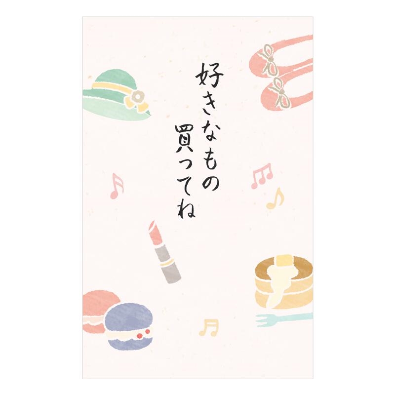 ラメがキラキラと輝く、かわいらしいぽち袋です。マカロンや口紅など、女の子らしいデザインです。