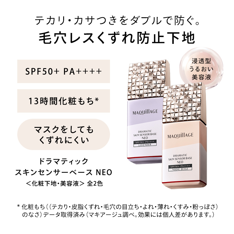 自然に素肌になじむ ヌーディーベージュ。 ワントーン明るい仕上がり ラベンダー。 13時間 化粧もち*データ取得済み