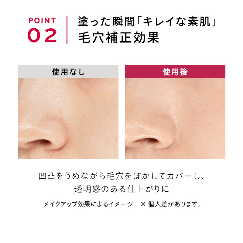 テカリ・カサつきダブルで防ぎ、スキンケアまで叶う、毛穴レスくずれ防止下地。