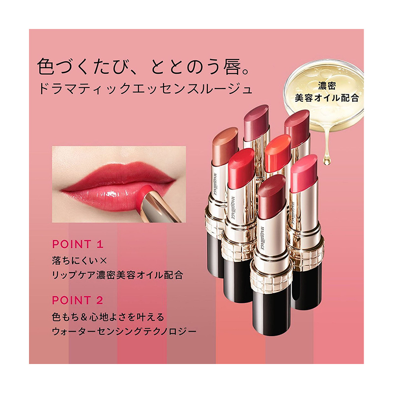濃密美容オイルで唇をコートして、うるおいを閉じ込め発色をキープ。長時間保湿持続。